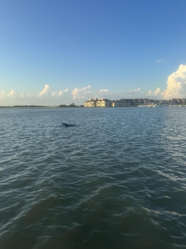 After about 20-25 minutes, we spotted what looked like a pod of dolphins up river feeding. We all were giddy with excitement, especially the kiddos. As we got closer to the pod, they were coming up and taking breathes as we stood around, silently, watching them with awe. They are a good indicator of a healthy ecosystem Charleston has strived to maintain in its waterways.