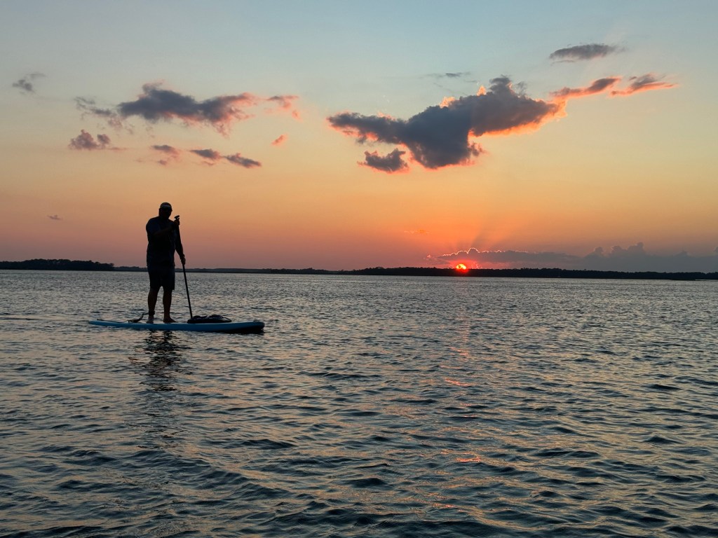 Charleston SUP Safaris, a paddle board excursion through the Folly Beach water ways, would be our next trek around the area. We opted to hit the sunset/ dolphin tour they offered as a group of six. Now, most of the people I went with had already been somewhat experienced in the paddle boarding life, I was not one of them. I had recently tried my hand at it on a lake this summer, but let’s just say, there wasn’t much success. I spent most of the time climbing back on the board instead of standing on it and propelling myself forward.